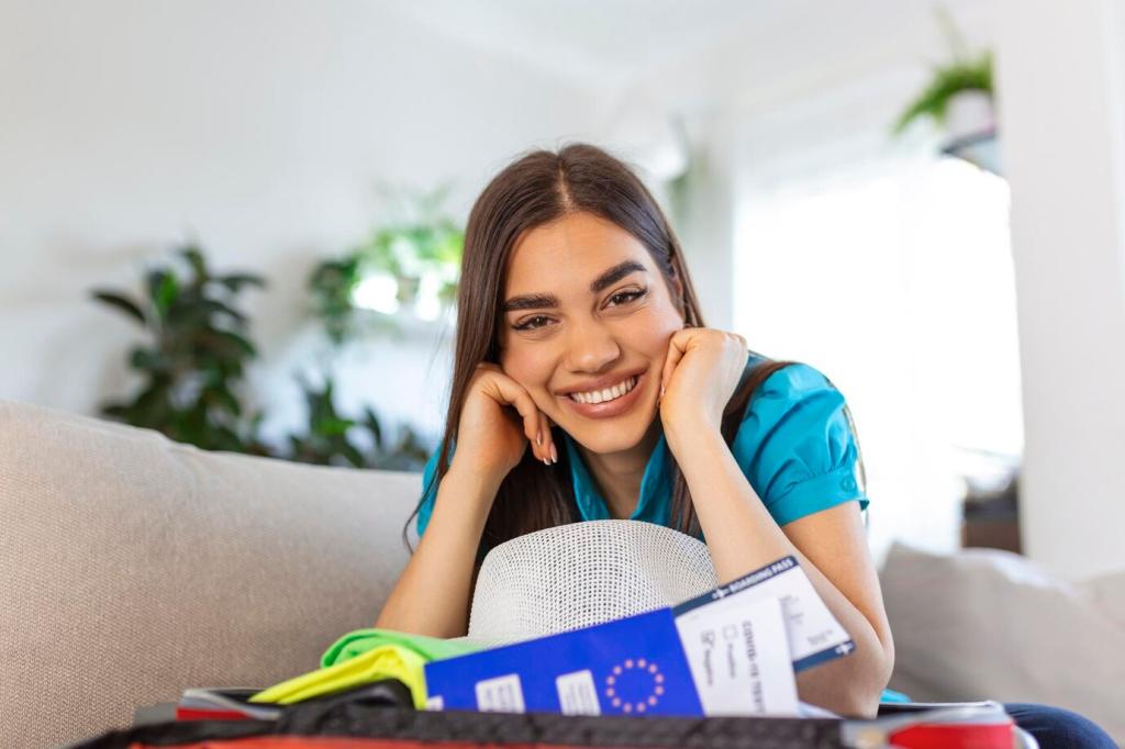 Lade Playlisten und Podcasts vor Abflug herunter. Ordne sie nach Stimmung: beruhigend, fokussiert, beflügelnd. Eine Notfallliste mit fünf Lieblingsstücken hilft in Krisenmomenten, wenn alles ruckelt, das Netz streikt und du nur deinen inneren Takt spüren kannst.